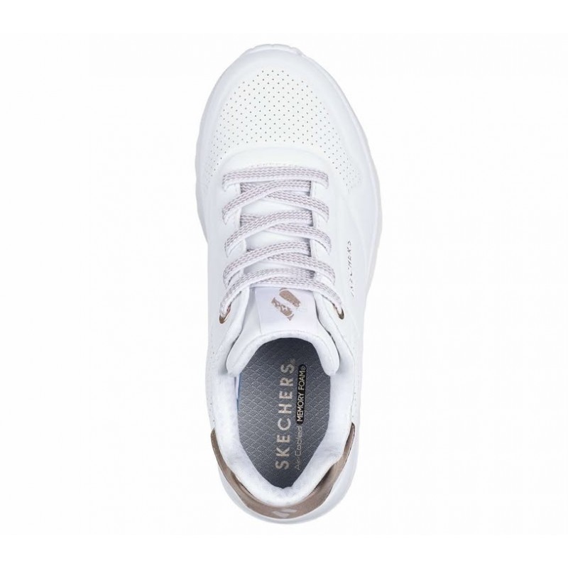 As SKECHERS Uno Lite – Metallic Mode Mulher unem estilo moderno, conforto premium e um toque metálico irresistível.
