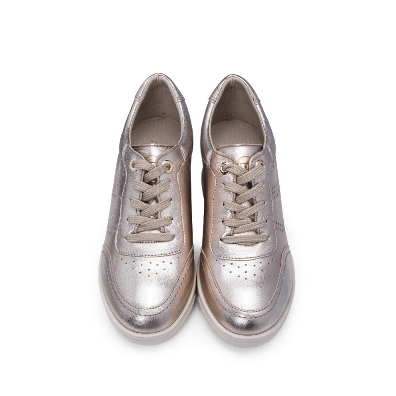 Procuras um calçado que una estilo e conforto? Esta sapatilha em cunha dourada é perfeita para ti!