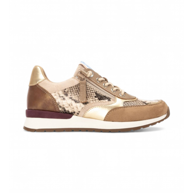 O contraste entre os tons castanhos, dourados e o efeito cobra acrescenta um toque ousado e sofisticado ao visual.