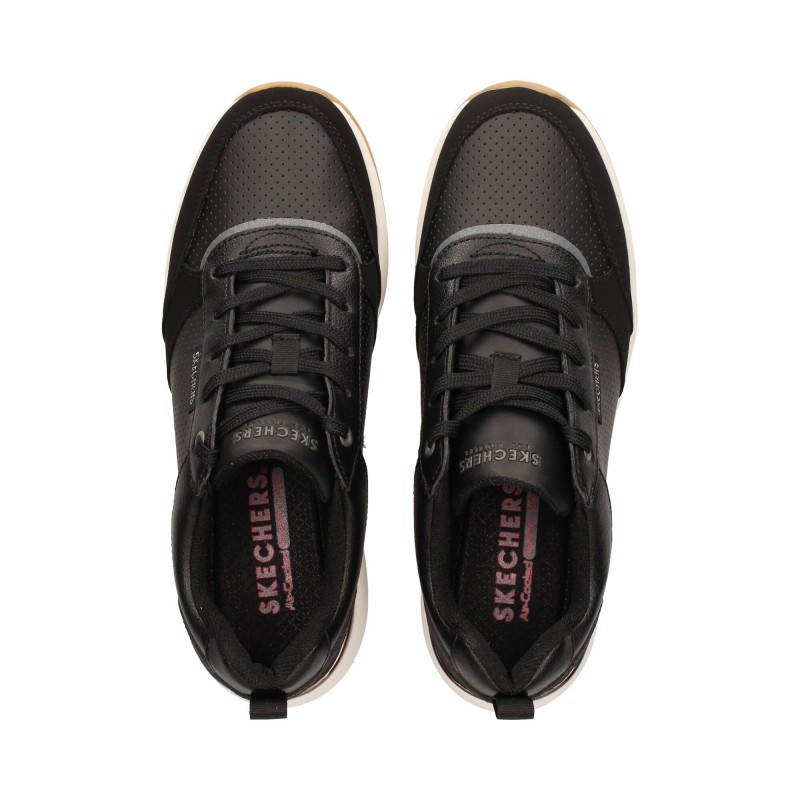 A sola espessa garante apoio e estabilidade, enquanto a palmilha Skechers Air-Cooled Memory Foam® envolve o pé com suavidade, garantindo conforto duradouro em cada passo.