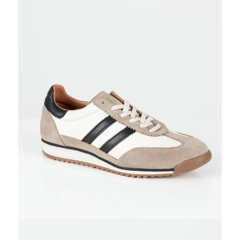 Combinando pele bege e branca com detalhes em preto, destacam-se pela sua estética desportiva elegante e pela qualidade dos materiais, refletindo o equilíbrio perfeito entre autenticidade e modernidade.