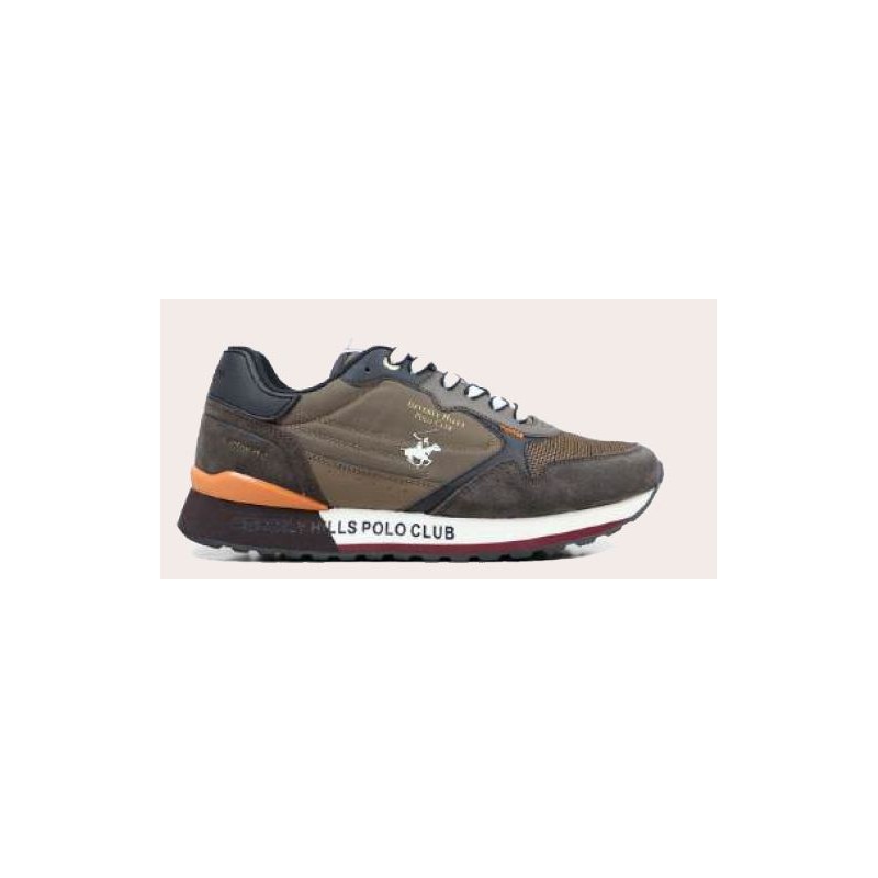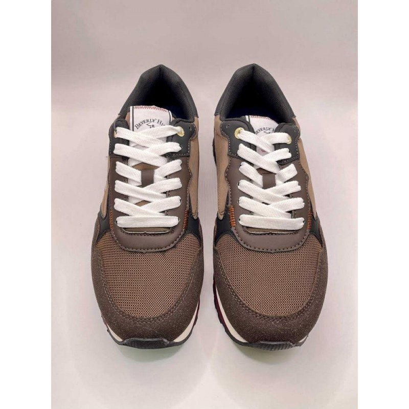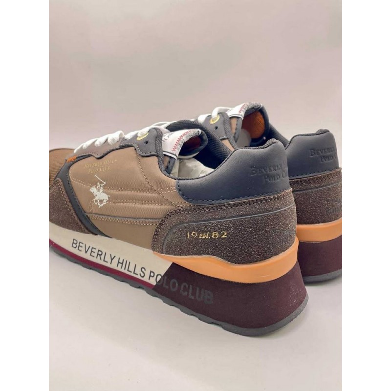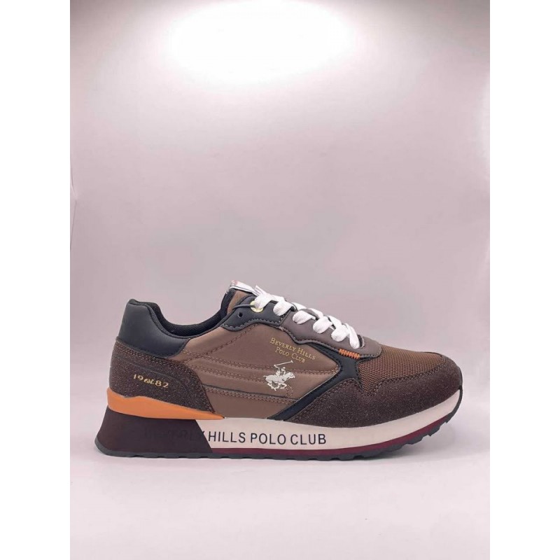 Com um design moderno em tons de castanho, laranja e preto, estas sapatilhas refletem a identidade clássica e elegante da Beverly Hills Polo Club, adaptada ao quotidiano urbano.