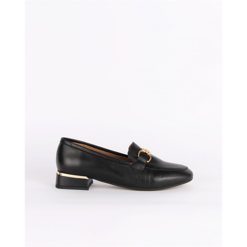 Sapatos Pretos em Pele com Detalhes Dourados Ref: CF2458