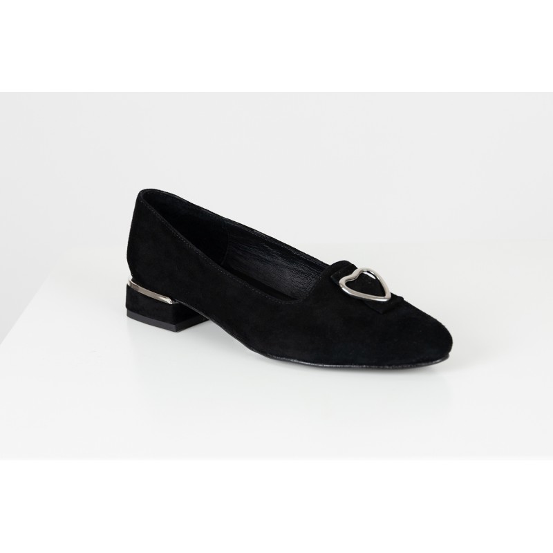 Este sapato raso em pele preta para senhora, da marca portuguesa SAMELLI, apresenta um design clássico com detalhe metálico discreto, perfeito para looks profissionais ou mais casuais.