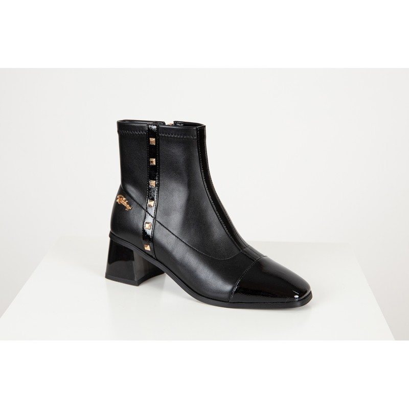 Há calçado que transforma a forma como se sente — e estes botins pretos são exatamente isso. O equilíbrio perfeito entre estilo e conforto, com linhas sofisticadas e um brilho discreto que transmite confiança em qualquer ocasião. O detalhe metálico lateral confere um toque de exclusividade, enquanto o salto médio oferece altura e estabilidade para enfrentar o dia com elegância.