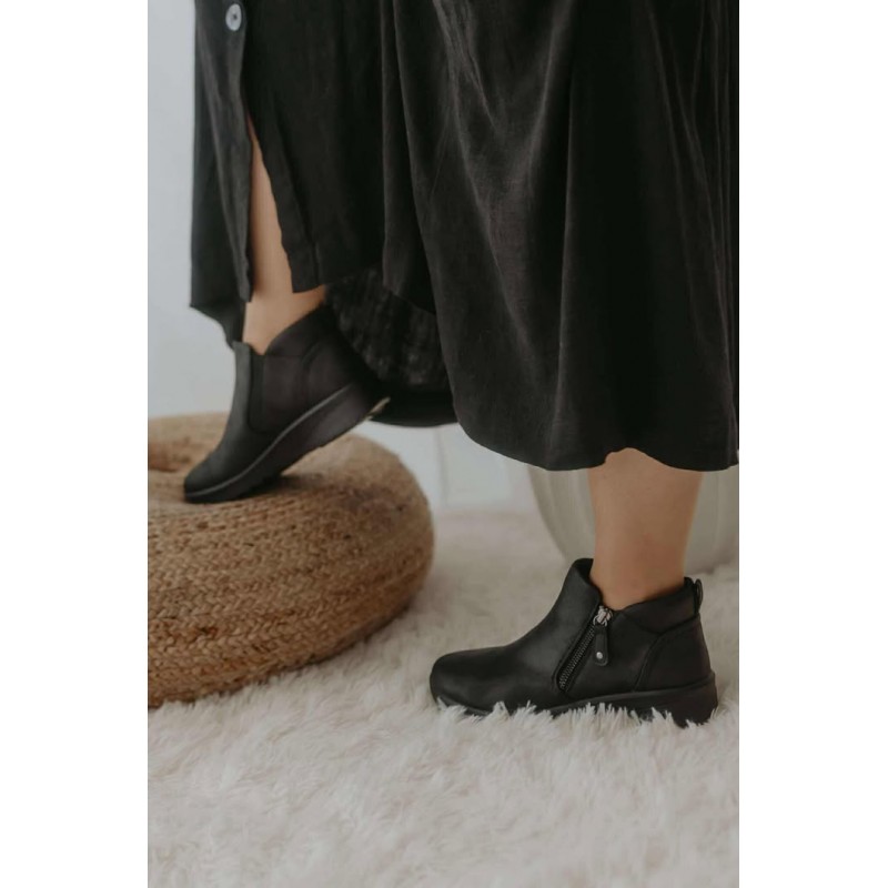 O fecho lateral torna-as fáceis de calçar, enquanto o acolchoamento interior proporciona uma sensação de bem-estar e leveza ao longo do dia.