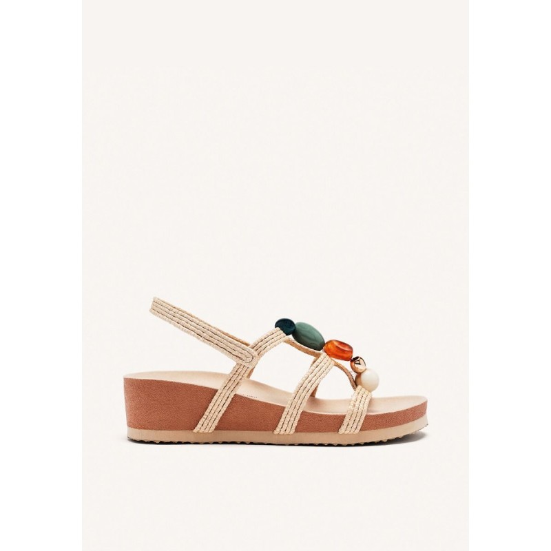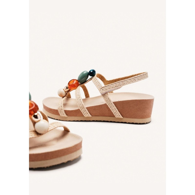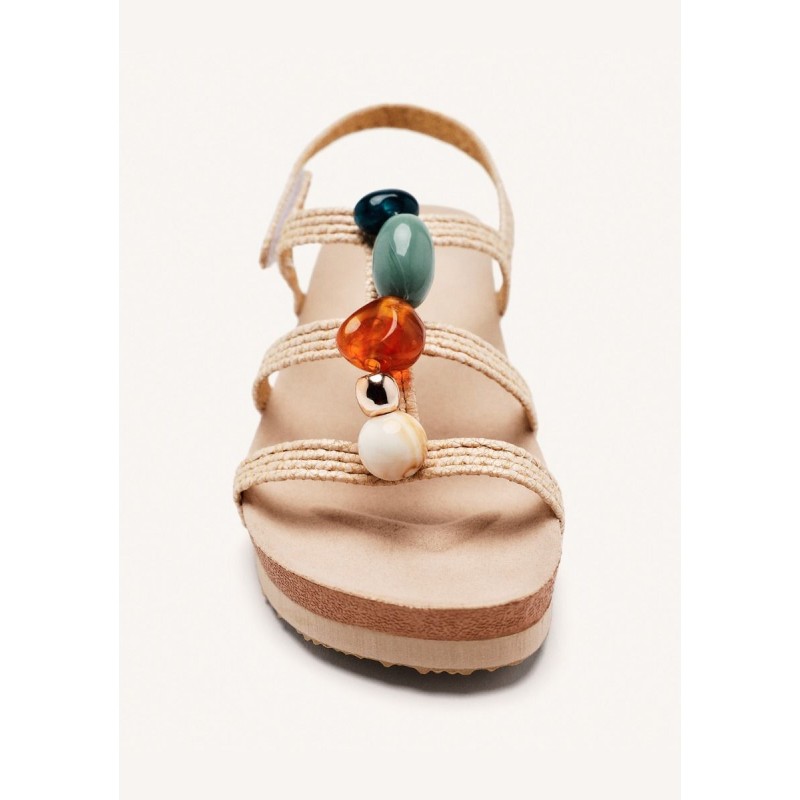 Os tons naturais combinam com tudo, enquanto as pedras coloridas no peito do pé são o toque criativo e boémio que faz toda a diferença. Vai com vestidos fluídos, calças de linho, jeans ou até aquele macacão mais sofisticado — é a sandália que acompanha o teu estilo, seja ele qual for.