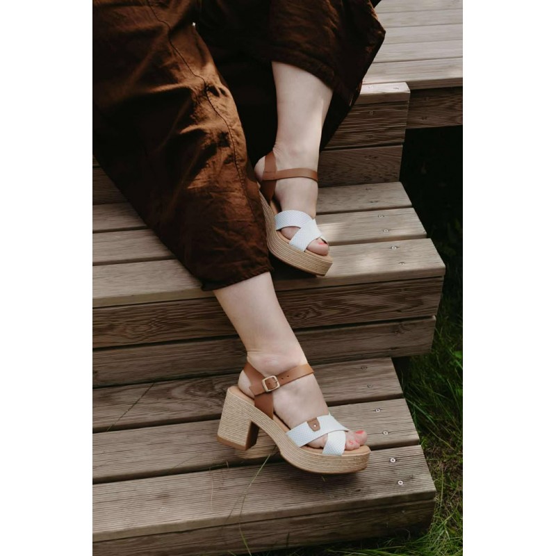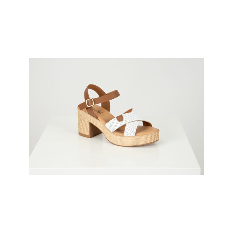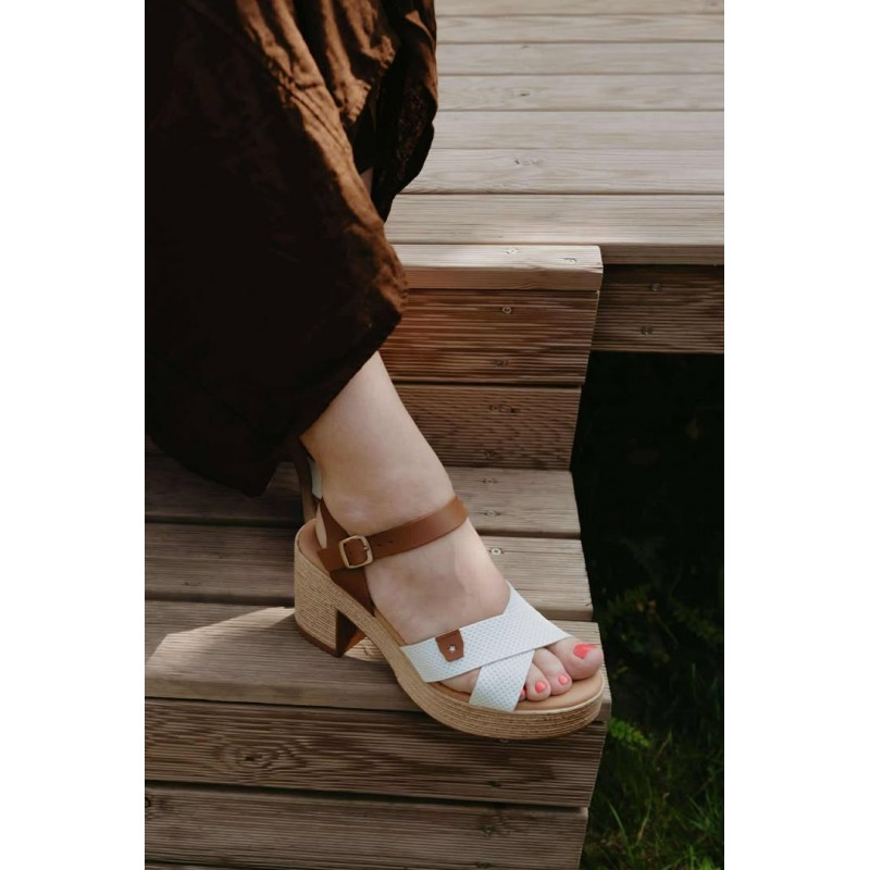 Sacchi Sandália de Salto de Cunha em Pele Brancas Ref:10926B