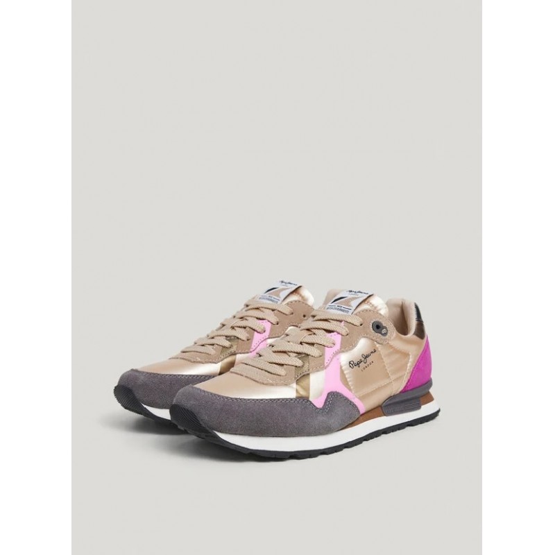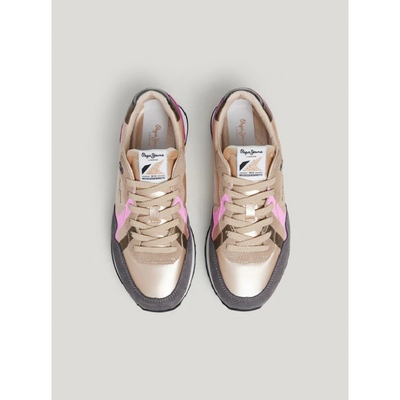 Com uma paleta ousada que mistura dourado, rosa fúcsia, cinza e nude, estas sapatilhas elevam qualquer look urbano.