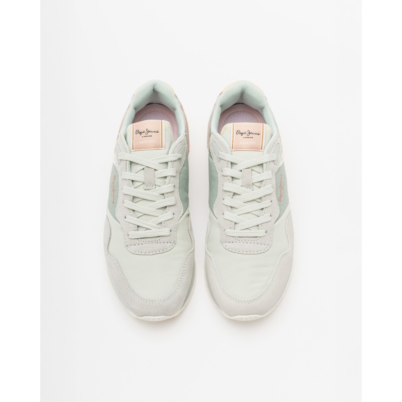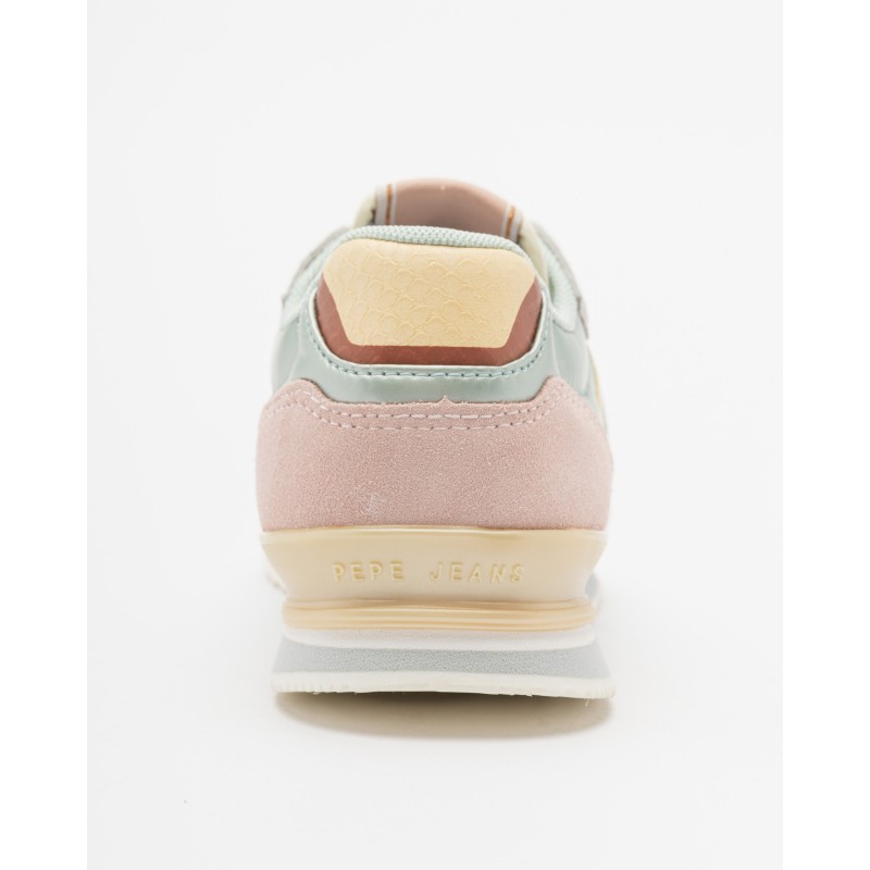 Inspiradas no estilo retro running, estas sapatilhas apresentam uma mistura de cores suaves – verde menta, rosa e bege – que lhes conferem um visual feminino, fresco e versátil.